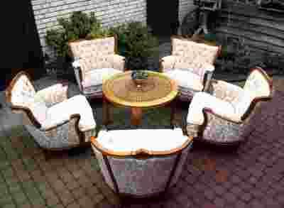 PIĘKNY KOMPLET STOLIK + PIĘĆ FOTELI