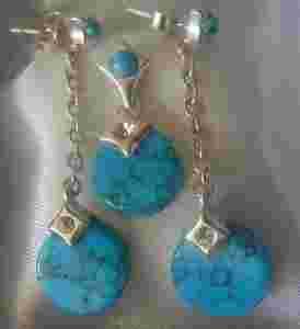 PIĘKNY KOMPLET TURKUS SVAROWSKI WISIOREK KOLCZYKI