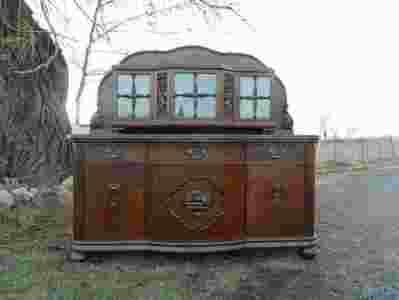 Piękny masywny i ciężki kredens - pomocnik. Posiada troje drzwi i trzy szuflady oraz wysuwany blat. Kredens składa się z dwóch części komody i oszklonej nadstawki. W komplecie są dwa kluczyki od górnej i dolnej części. Całośc w doskonałym stanie.