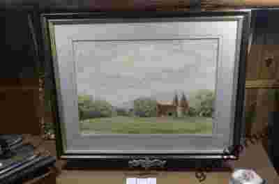PIĘKNY OBRAZ AKWARELA * PEJZAŻ WIEŚ W ODDALI