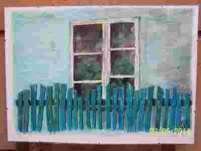 Piękny obraz okna (pastele tłuste) w antyramie