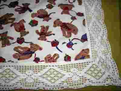 PIĘKNY OBRUS W MISIE Z SZEROKĄ KORONKĄ