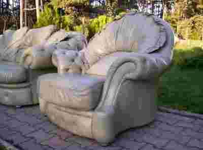 Piękny,pikowany skórzany Chesterfield 3+1+1.Skóra