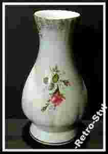 PIĘKNY, PORCELANOWY WAZON Z RÓŻĄ - wysoki