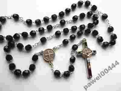 Piękny RÓŻANIEC, ŚW. BENEDYKT, CZARNY.