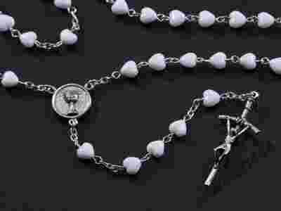 Piękny RÓŻANIEC KOMUNIJNY, Serduszka, MEDALIK.