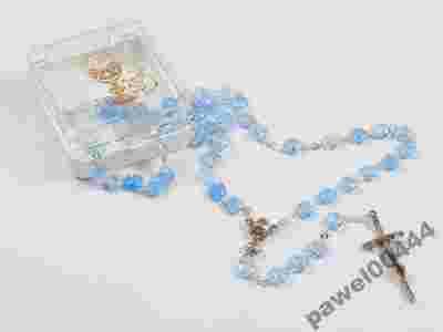 Piękny RÓŻANIEC KOMUNIJNY, Serduszka, Niebieski.