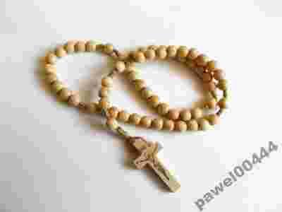 Piękny RÓŻANIEC NA SZNURKU, DREWNIANY.