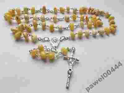 Piękny RÓŻANIEC z Matką Boską, BURSZTYN.