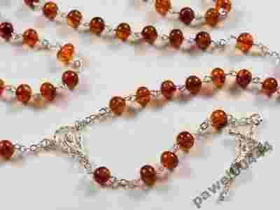 Piękny RÓŻANIEC z Matką Boską, BURSZTYN.