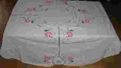 Piękny ręcznie haftowany obrus plus koronka