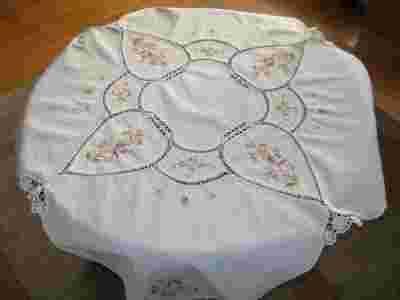 Piękny ręcznie haftowany obrus z koronką