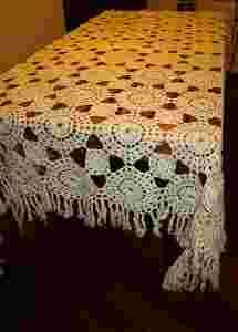 piękny RĘCZNIE ROBIONY OBRUS ażurowy - ecru