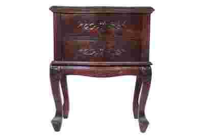 Mebel wykonany z litego drewna egzotycznego w kolorze ciemno brązowym (Mahoń).