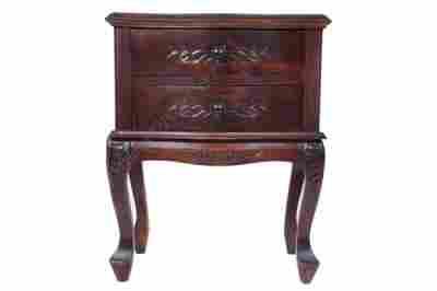 Mebel wykonany z litego drewna egzotycznego w kolorze ciemno brązowym (Mahoń).