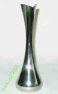 Kształt wyrobu klasyczny, pięknie wyprofilowany. Dół jest szeroki, obły i dalej biegnąc ku górze zwęża się subtelnie by na samym wierzchu rozwinąć się niczym pąk kwiatowy. Dno wazonu wyłożone jest niebieskim, niestety poprzez upływ czasu trochę zniszczonym już aksamitem. Naczynie klasyczne, gładkość i stylowa linia profili, nadaje mu subtelnego piękna, elegancji i szyku. Stan zachowania wyrobu, jak na tak wiekowe dzieło, bardzo dobry.