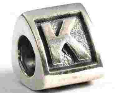 Piękny srebrny bead koralik modułowy litera K