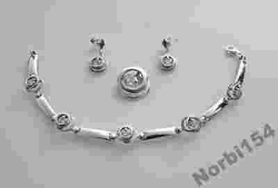 Piękny Srebrny Komplet z Cyrkonią - Efektowny!!!