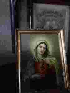 PIĘKNY STARY OLEODRUK MATKI BOSKIEJ GOREJĄCE SERCE
