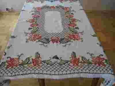 Piękny stary ręcznie haftowany obrus