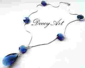 PIĘKNY SZAFIROWY NASZYJNIK SREBRO I SWAROVSKI