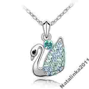 PIĘKNY WISIOREK SWAROVSKI + ŁAŃCUSZEK 18K ŁABĄDŹ