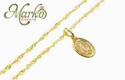 PIĘKNY ZŁOTY KOMPLET ŁAŃCUSZEK Z MEDALIKIEM pr333