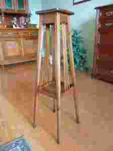 Przedmiotem licytacji jest bardzo ładny ,wysoki kwietnik . Mebelek wykonano w stylu secesji w latach 1900 -1910 . Mebelek wykonano z drewna bukowego i zabarwiono na ładny odcień brązu . Mebelek wykonano bardzo starannie . Kwietnik posiada dodatkową półeczkę , co pozwala na wyeksponowanie dodatkowej rośliny . Dolna półka ma większe rozmiary niż górna . Kwietnik "zwęża" się ku górze , co czyni go naprawdę stabilnym . Dzięki swej klasycznej formie kwietnik będzie pasował do wystroju wielu wnętrz . Stan zachowania przedmiotu : bardzo dobry . Mebelek jest odnowiony. Jego konstrukcja jest solidna . Nie ma śladów po owadach . Na żywo mebelek wygląda na prawdę dużo korzystniej niż na zdjęciach , które były robione przy złym oświetleniu . Polecam .