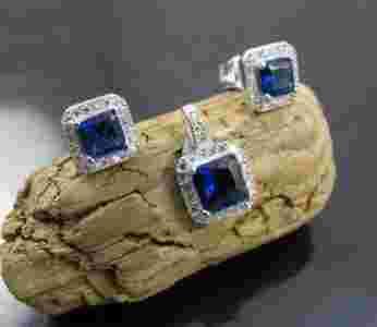 Piękny zgrabny komplet - szafir cyrkonie + GRATIS
