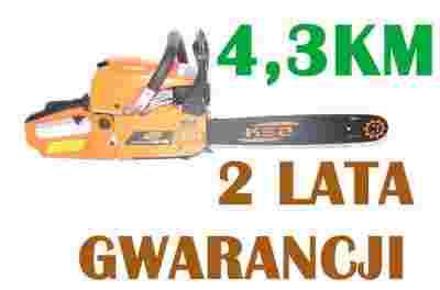 PIŁA SPALINOWA ŁAŃCUCH PROWADNICA POJEMNIK DO SPORZĄDZENIA MIESZANKI INSTRUKCJA OBSŁUGI UNIWERSALNY KLUCZ DO ŚWIECY I NAPINANIA ŁAŃCUCHA 2 KLUCZE IMBUSOWE WKRĘTAK PILNIK DO OSTRZENIA ŁAŃCUCHA GWARANCJA 24 MIESIĄCE