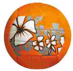 Zewnętrzna warstwa piłki to pianka neoprenowa ozdobiona motywem w hawajskie kwiaty.