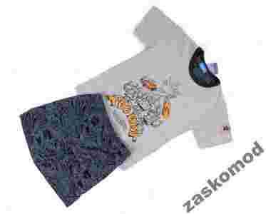 Przedmiotem aukcji jest ładna Zaskomod Dziecięca Piżama Chłopięca firmy Cornette z krótkimi rękawami i krótkimi spodniami. Góra piżamy w kolorze szarym, a dół granatowym z czarnymi napisami i różnymi wzorami. Na bluzie oryginalny nadruk oraz napis: Too fast. Również na rękawie wyszyty jest napis. , Dekolt półokrągły wykończony granatową lamówką i pomarańczową wypustką. Piżama zapakowana w kolorowe pudełko. Wysoka jakość wykonania. Bardzo miła w dotyku bawełna. Zaskomod