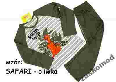 Przedmiotem aukcji jest ładna Zaskomod Dziecięca Piżama Chłopięca firmy Cornette z długimi rękawami typu raglan i długimi, gładkimi spodniami. Góra Piżamki w paski: wąskie oliwkowe i szersze szare. Spodnie w kolorze oliwkowym. Po bokach białe wypustki. Na bluzie nadruk pieska oraz napisy. , Dekolt półokrągły wykończony oliwkową lamówką. Piżama zapakowana w kolorowe pudełko. Wysoka jakość wykonania. Bardzo miękka i miła w dotyku bawełna. Zaskomod