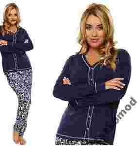 Przedmiotem aukcji jest elegancka Piżama damska DO KARMIENIA, długi rękaw, długie spodnie. Góra jednobarwna, w kolorze granatowym. Na całej długości zapinana na praktyczne napy, które ułatwiają nakarmienie maluszka. Zaskomod Dekolt w kształcie litery V . Wykończony tak jak zapięcie, dół bluzy i rękawy białym, ozdobnym ściegiem, który ładnie ożywia bluzę. Rękawy zakończone szerokim mankietem. Bardzo miła w dotyku bawełna. Spodnie proste z nadrukiem ciekawych wzorów kwiatów. W pasie wciągnięta 3 cm guma. Piżama charakteryzuje się modnym i eleganckim krojem,Zaskomod co daje poczucie komfortu i swobody. Każda Mama będzie wyglądać w niej ciekawie i młodo. Piżama wykonana jest z 100% bawełny-ściągacz, spodnie: dżersej,nadruk.