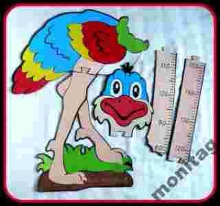 Przedmiotem aukcji jest śliczna, solidnie wykonana miarka wzrostu dziecka w formie uroczego strusia . Struś wykonany jest z pianki ma regulowaną szyję.
