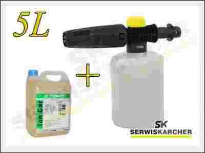 Lanca pianowa KARCHER 0,6L pozwala bez wysiłku czyścić różnego rodzaju powierzchnie np. samochody i motocykle, szkło i kamień. Zbiornik 0,6 litra. Tworzy obfitą pianę (efekt śniegu) utrzymującą się na czyszczonej powierzchni, co pozwala jej zareagować z brudem. Współpracuje ze wszelkiego rodzaju środkami czyszczącymi w stanie płynnym. Chemia podawana przez lancę piany nie przechodzi przez głowicę, co zwiększa żywotność i wytrzymałość myjki. Pianownica posiada dwie regulacje - szerokości strumienia oraz ilości pobierania chemii. Przeźroczysty zbiornik umożliwia kontrolowanie ilości płynu w pojemniku. W porównaniu ze zbiornikami chemii wbudowanymi w myjki, lub wężykami zasysającymi w myjkach, pianownica zabiera do 4 razy mniej płynu przez co przy tej samej skuteczności jest 4 x oszczędniejsza! Pianownica posiada gwint przyłącza zbiornika wykonany z tworzywa, co zapobiega cięciu gwintu na pojemniku jak to bywa w przypadku przyłączy mosiężnych.