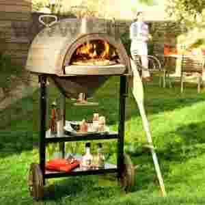 Piec posiada dwa duże koła, dzięki którym z łatwością można go przetransportować w każde miejsce ogrodu lub tarasu. Wymiary: 145 x 98 x 77 cm