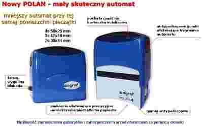 Prezentowany automat o symbolu Wagraf Polan 3 posiada powierzchnię gumki stemplarskiej o wymiarach 47x18mm. Taka powierzchnia umożliwia zmieszczenie do 6 linii tekstu. Dzięki temu na takich automatach najczęściej wykonuje się pieczątki firmowe.