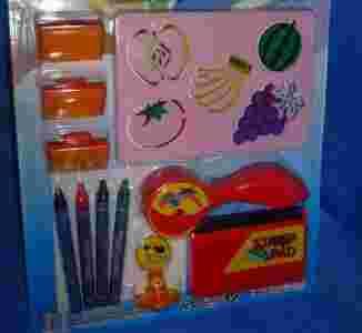 Zestaw PIECZĄTKI stempelki szablony kredki ROLLER