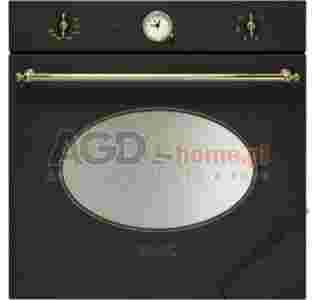 Piekarnik elektryczny o szerokości 60 cm marki Smeg, w klasie energetycznej A-10% Front piekarnika wykonany został w stylu retro. Ma on pojemność 72 litrów, 6 funkcji pieczenia oraz zegar analogowy. Użytkownik spośród 6 opcji pieczenia ma do wyboru m.in. tak zwane pieczenie tradycyjne przy wykorzystaniu górnej i dolnej grzałki.