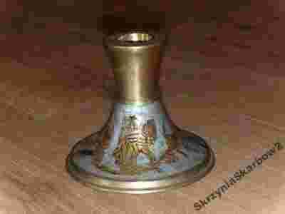 Pieknie malowany swiecznik mosiezny