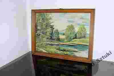 Piekny Obraz PEJZAZ recznie malowany 1900