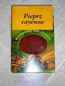 Zastosowanie :Stosuje się go do zapiekanek, dań z jaj, makaronów, drobiu i sosów a nawet gorącej czekolady. Pieprz kajeński przyśpiesza przemianę materii i obniża poziom cholesterolu. Papryka Cayenne zawiera kapsaicynę - alkaloid mający właściwości przeciwbólowe oraz antyoksydacyjne. Oprócz swoich właściwości kulinarnych pieprz kajeński jest stosowany w medycynie naturalnej do leczenia takich przypadłości jak: dolegliwości gastryczne (np. bóle brzucha), choroby układu krążenia, bóle reumatyczne, bóle gardła (płukania).