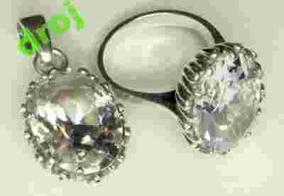 Pierścionek srebrny z cyrkonią i wisiorek komplet