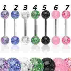 PIERCING KOLCZYK DO JEZYKA AKRYL BROKAT PEREŁKA