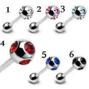 PIERCING KOLCZYK DO JEZYKA CZTERY KRYSZTAŁY