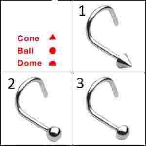 PIERCING KOLCZYK DO NOSA KULKA STOŻEK KOPUŁKA