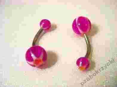 DO SPRZEDAŻY: KOLCZYK DO PĘPKA; NIERDZEWNA STAL CHIRURGICZNA PLUS BARWNE AKRYLOWE KULECZKI. DŁUGOŚĆ CAŁEGO KOLCZYKA - 23 MM, DŁUGOŚĆ KOLCZYKA W CIELE - 10 MM, ŚREDNICA MNIEJSZEJ KULKI - 5 MM, ŚREDNICA WIĘKSZEJ KULKI - 8 MM.