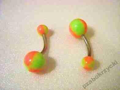 DO SPRZEDAŻY: KOLCZYK DO PĘPKA; NIERDZEWNA STAL CHIRURGICZNA PLUS BARWNE AKRYLOWE KULECZKI. DŁUGOŚĆ CAŁEGO KOLCZYKA - 23 MM, DŁUGOŚĆ KOLCZYKA W CIELE - 10 MM, ŚREDNICA MNIEJSZEJ KULKI - 5 MM, ŚREDNICA WIĘKSZEJ KULKI - 8 MM.