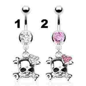 PIERCING KOLCZYK DO PęPKA CZASZKA SERCE KRYSZTAŁKI